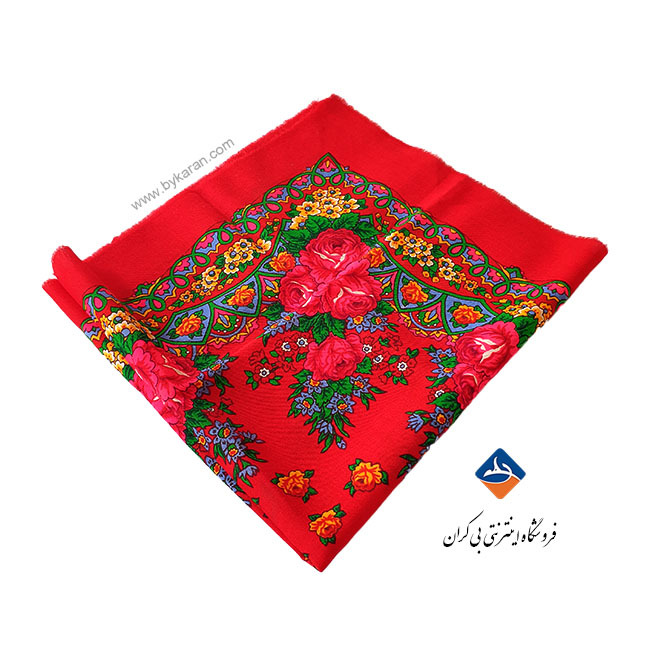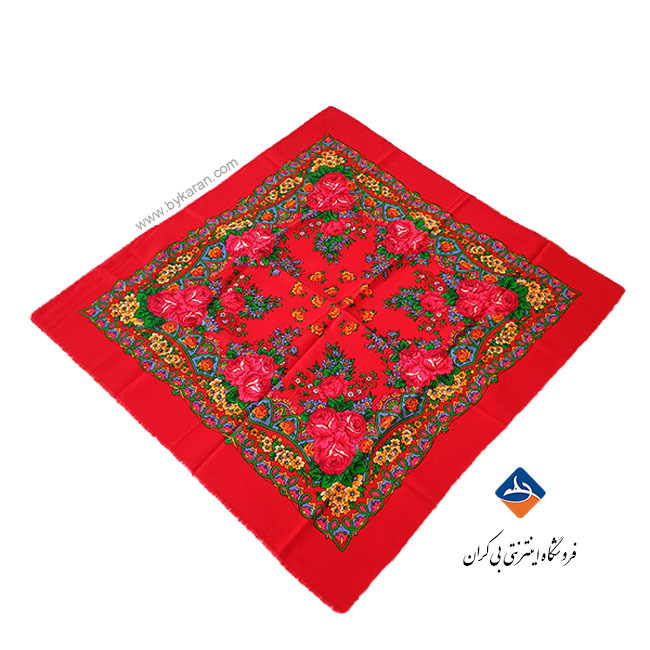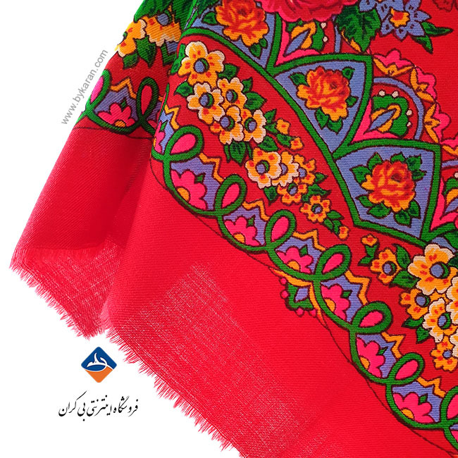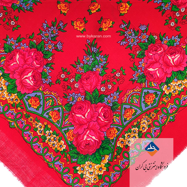 این چارقد پشمی زیبا با طراحی اصیل و رنگ‌بندی چشم‌نواز، یکی از محبوب‌ترین پوشاک سنتی در میان طرفداران صنایع دستی ایرانی است. زمینه‌ی قرمز درخشان در کنار گل‌های درشت و نقش‌و‌نگارهای کلاسیک، جلوه‌ای گرم، شاد و کاملاً سنتی به این روسری می‌بخشد.