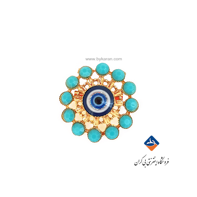 سنجاق سینه چشم‌زخم با طراحی دایره‌ای و نگین‌های فیروزه‌ای رنگ، ساخته شده با ترکیب فلز طلایی و مهره چشم نظر. این سنجاق نمادی از حفاظت و انرژی مثبت بوده و به‌راحتی روی لباس، کیف یا شال نصب می‌شود. انتخابی زیبا و معنوی برای هدیه دادن یا تکمیل استایل روزمره.