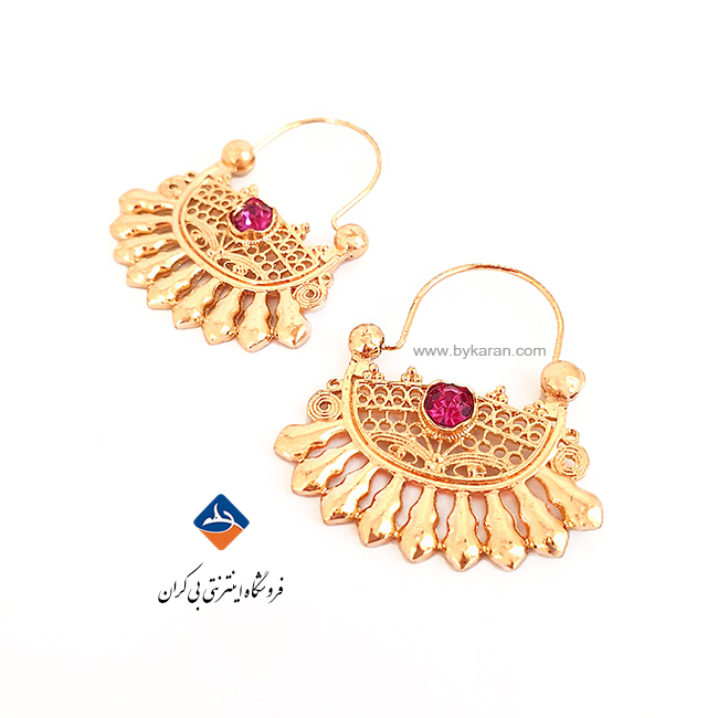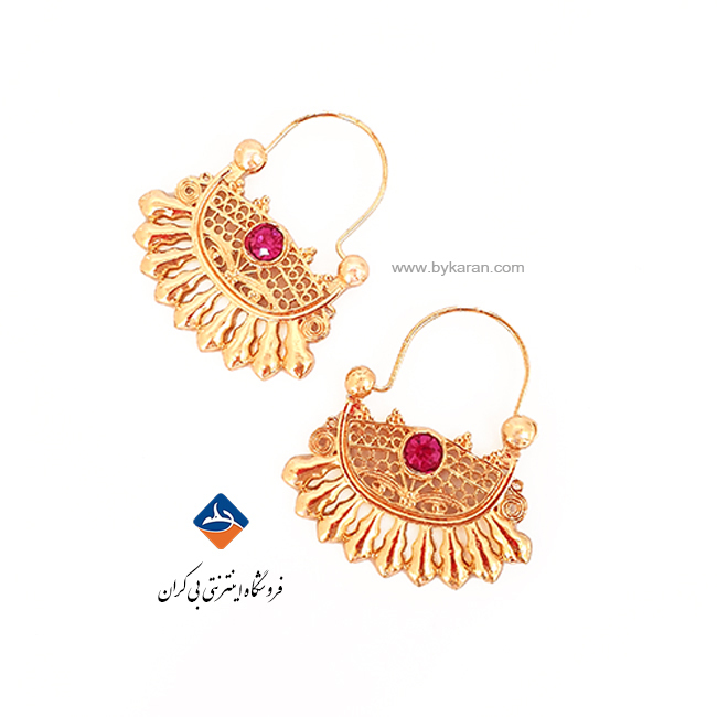 گوشواره سنتی طرح خورشیدی با نگین رنگی